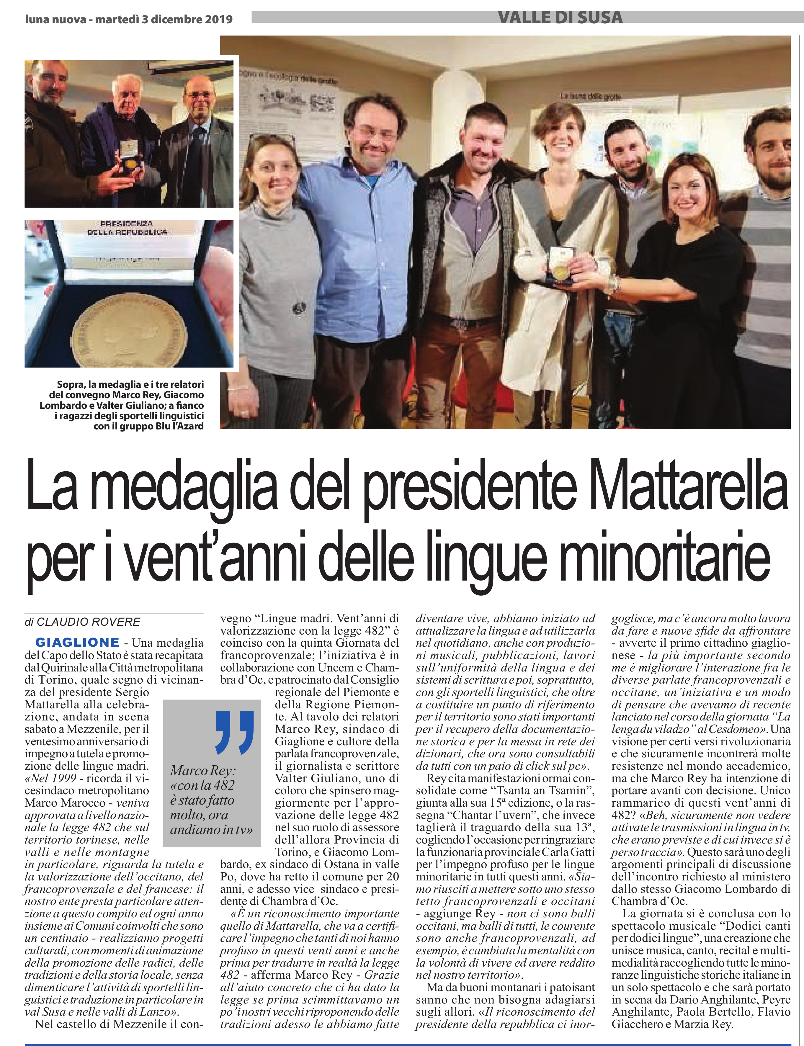 La medaglia del presidente Mattarella per i vent’anni delle lingue minoritarie