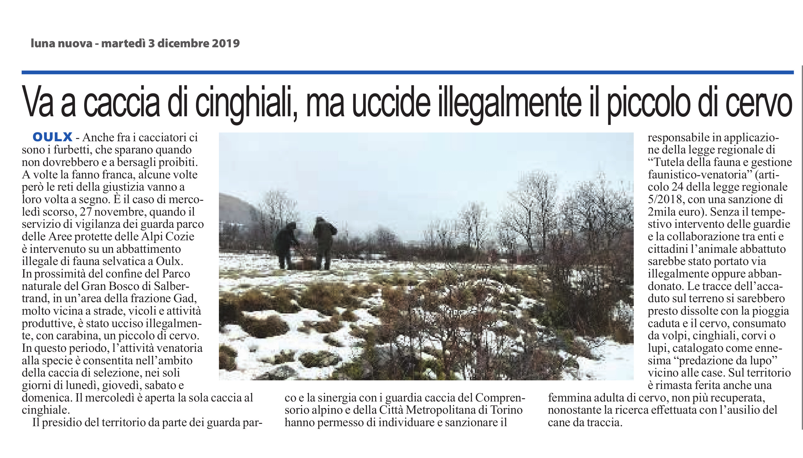 Oulx. uccide un cerbiatto, multato dai guarda parco