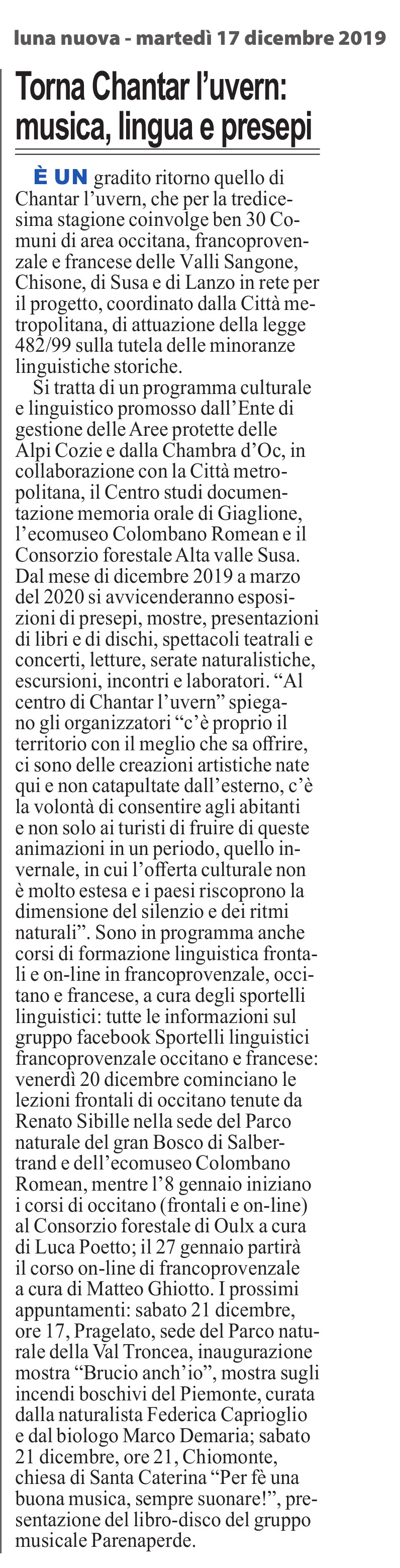 Torna Chantar l’uvern: musica, lingua e presepi