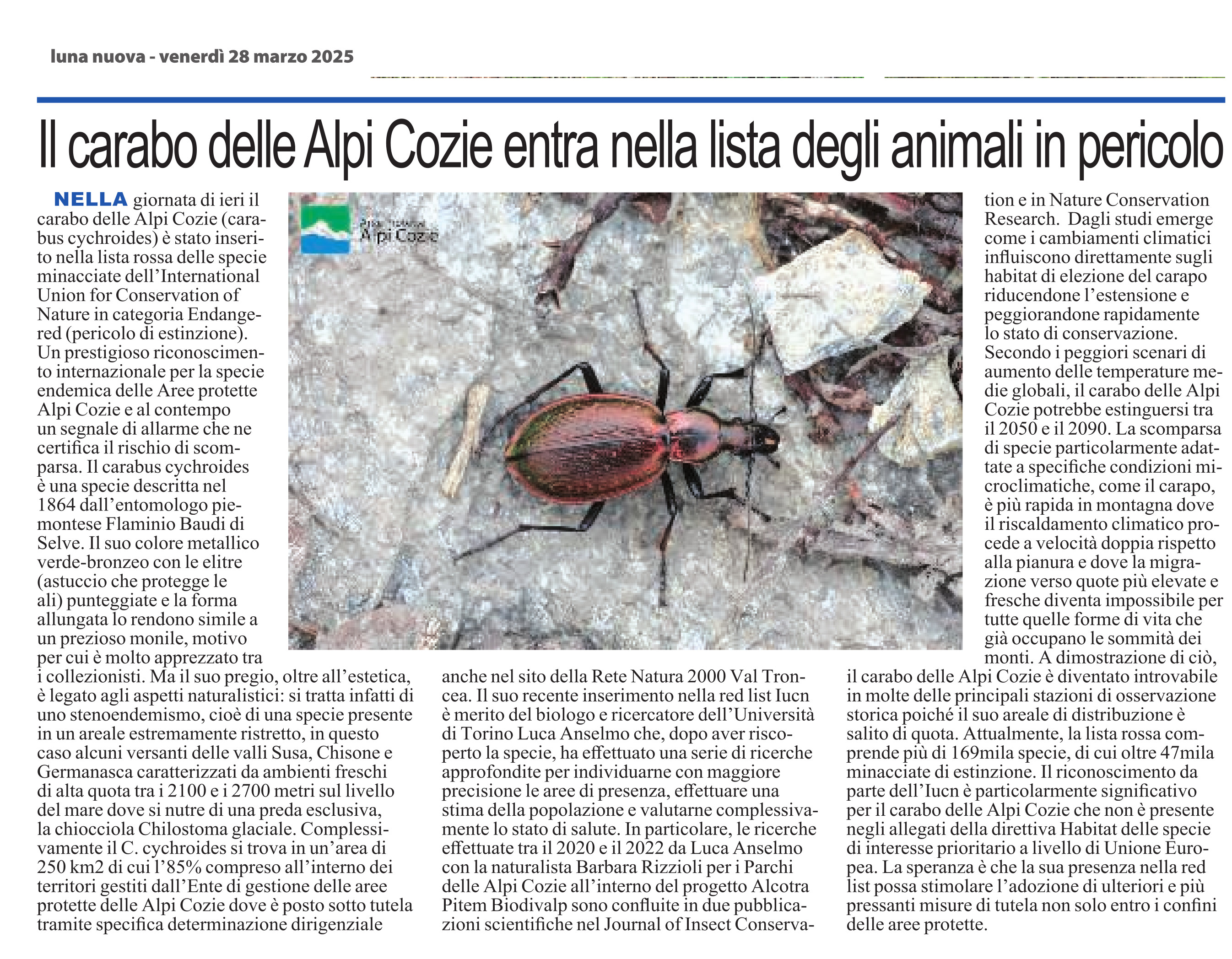 Il Carabo delle Alpi Cozie nella Lista Rossa: un allarme per la biodiversità alpina