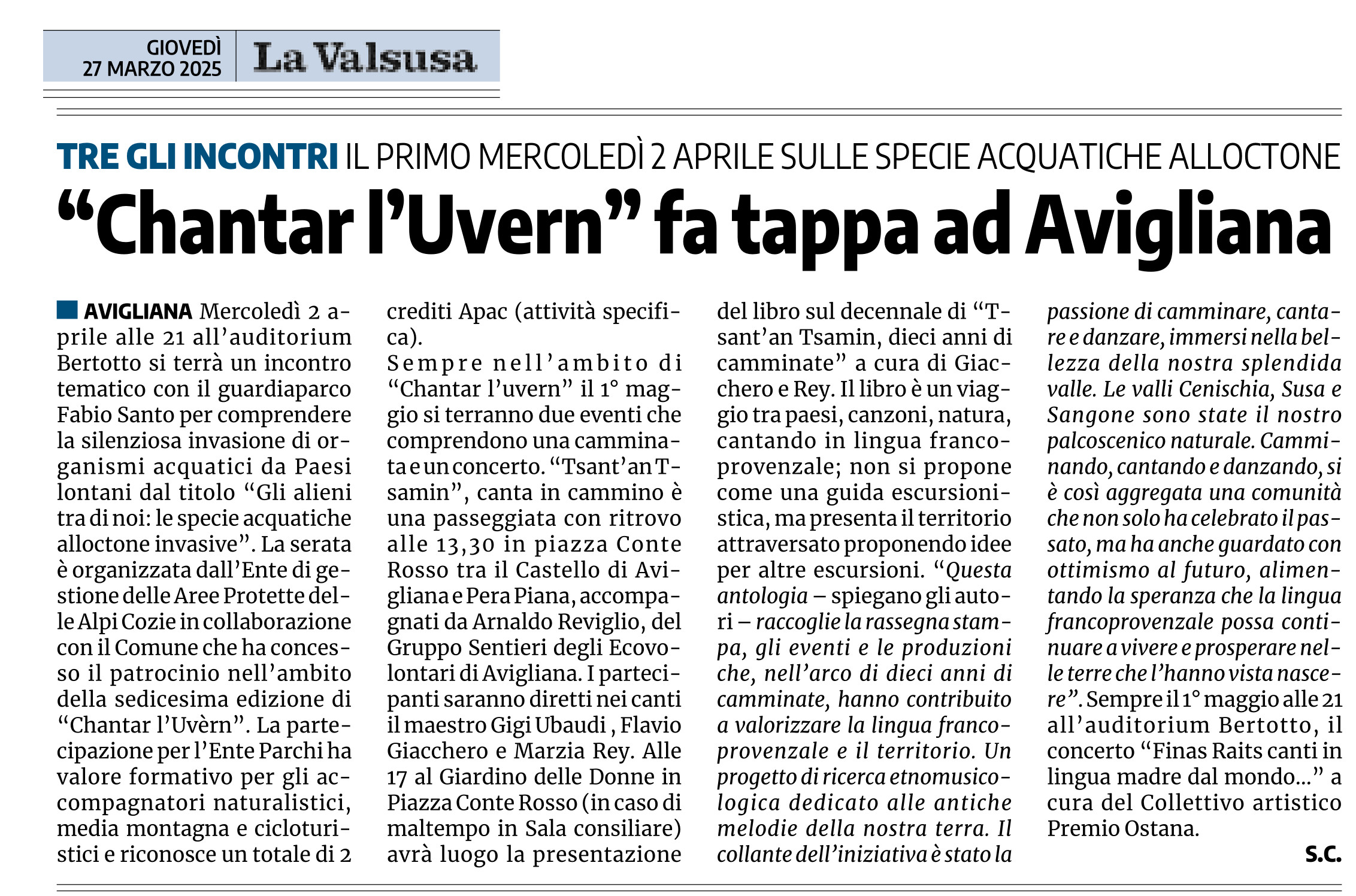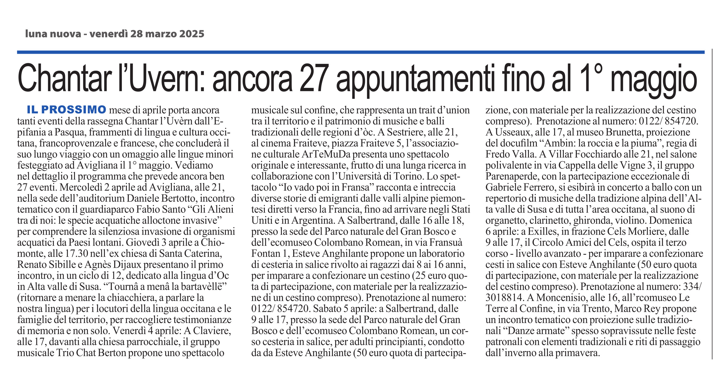 Chantar l’Uvern: ancora 27 appuntamenti fino al 1° maggio