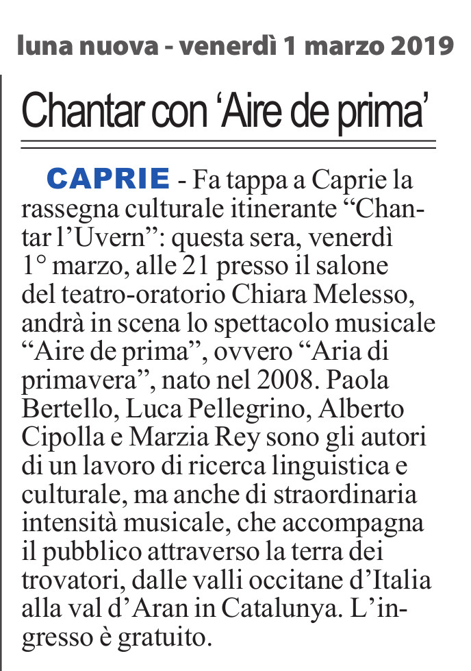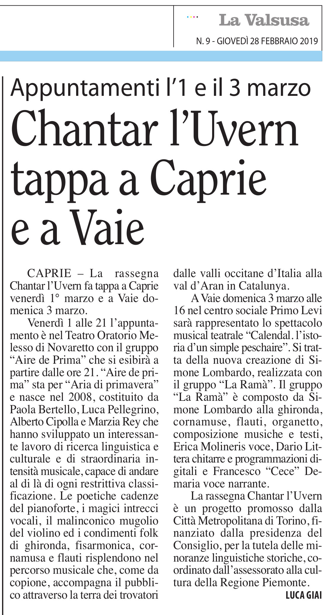 Chantar l’Uvern tappa a Caprie e a Vaie