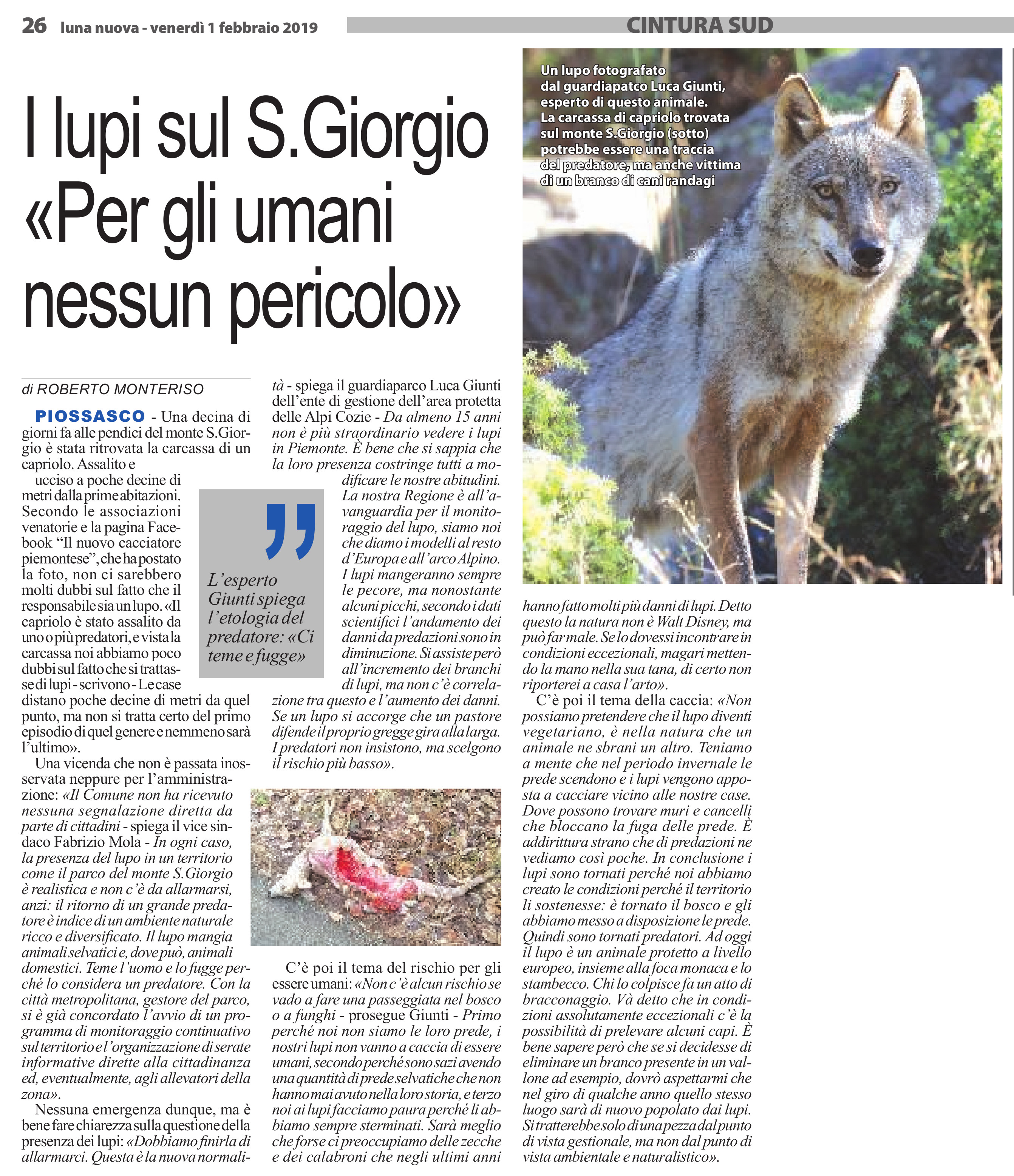 I lupi sul S.Giorgio "Per gli umani nessun pericolo"