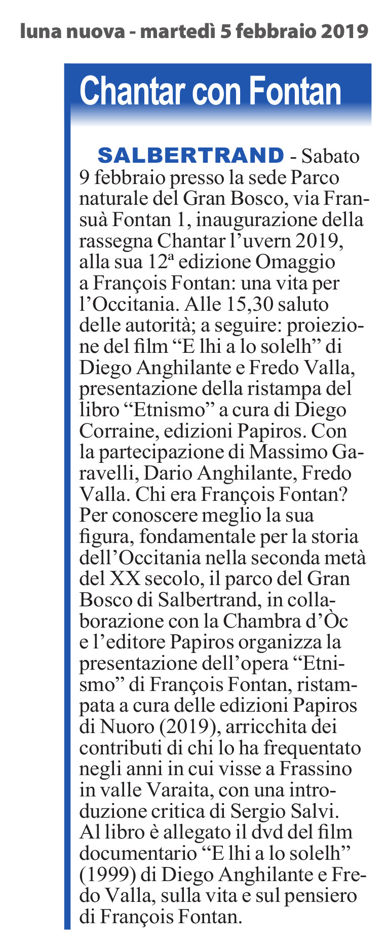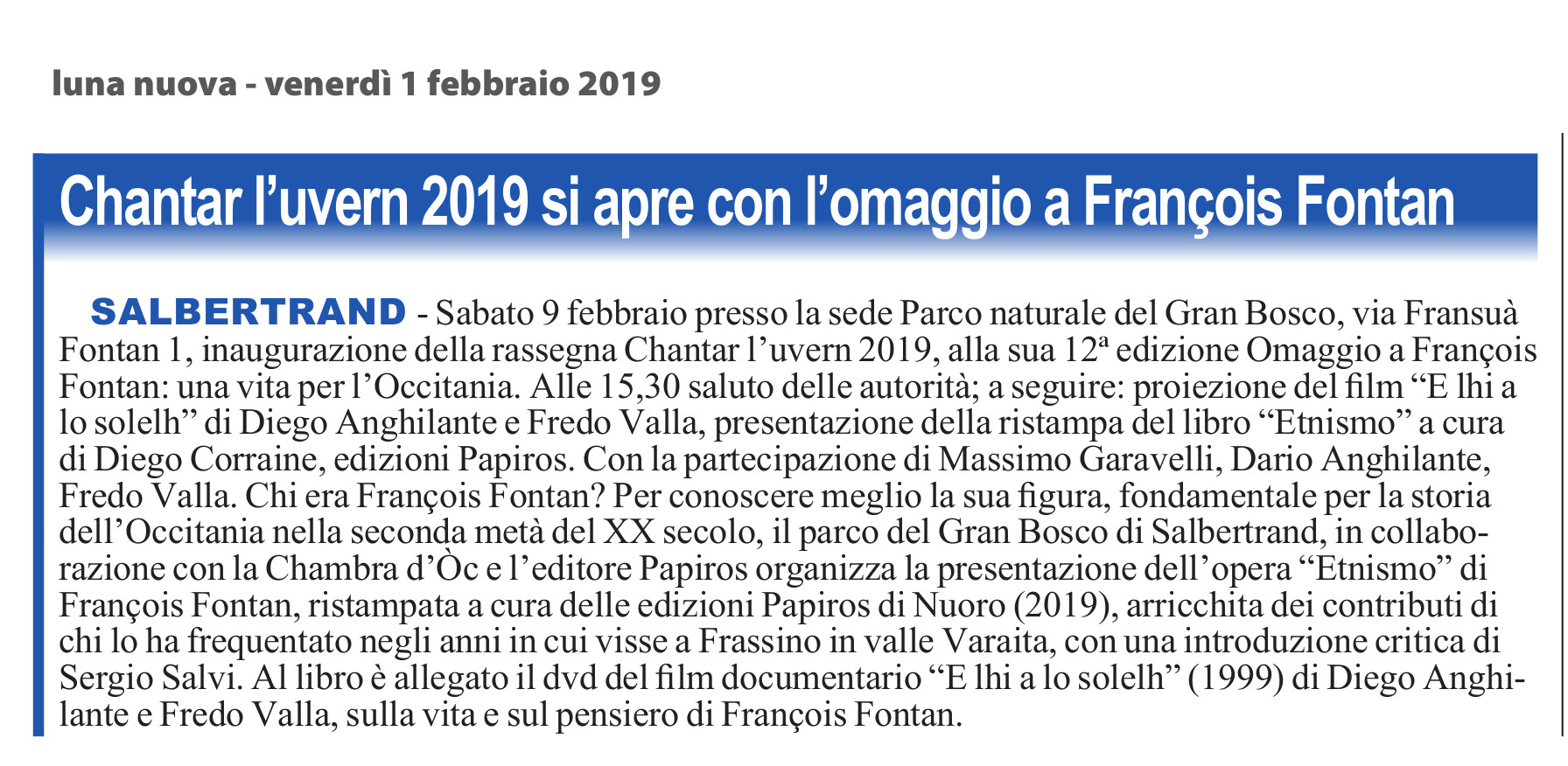 Chantar l’uvern 2019 si apre con l’omaggio a François Fontan