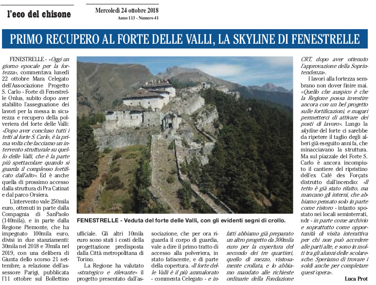 Primo recupero al Forte delle Valli, la skyline di Fenestrelle