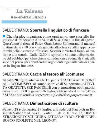 Sportello linguistico di francese - Caccia al tesoro all'Ecomuseo - Dimostrazione di scultura