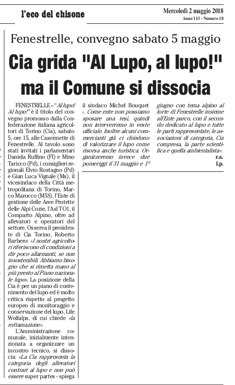 Cia grida "Al lupo, al lupo!" ma il Comune si dissocia