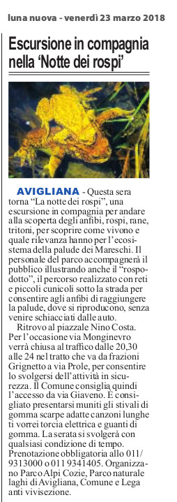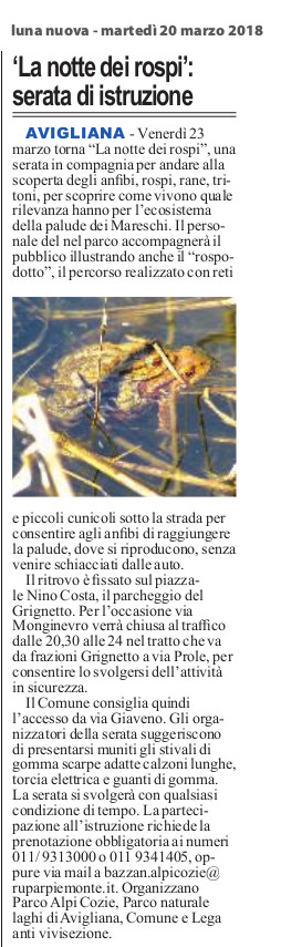 "La notte dei rospi": serata di istruzione