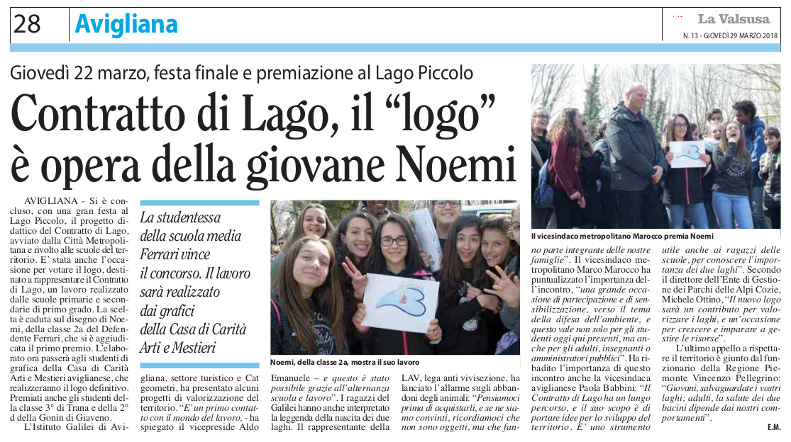 Contratto di Lago, il "logo" è opera della giovane Noemi