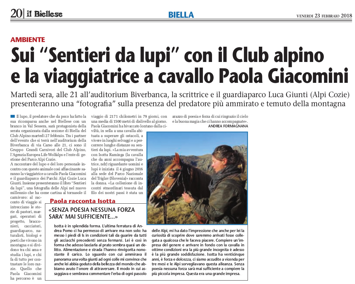 Sui “Sentieri da lupi” con il Club alpino e la viaggiatrice a cavallo Paola Giacomini