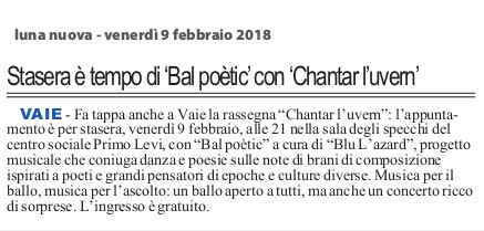 Stasera è tempo di "Bal poètic" con "Chantar l'uvern"