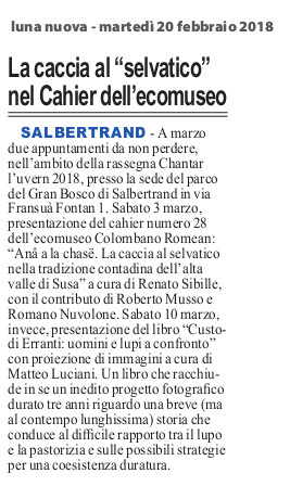 La caccia al "selvatico" nel Cahier dell'ecomuseo