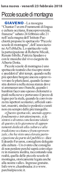 Valgioie, Chantar l'Uvern tra i banchi di scuola