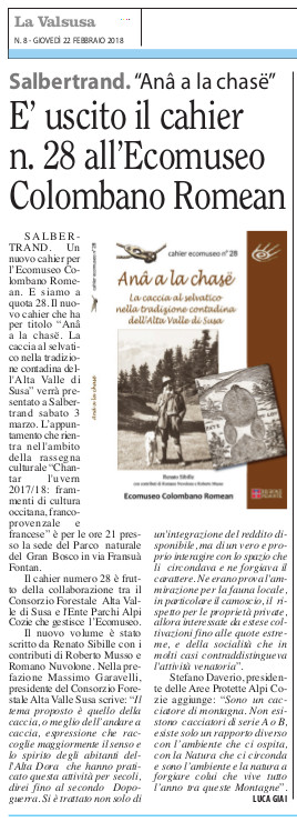 E' uscito il cahier n. 28 all'Ecomuseo Colombano Romean