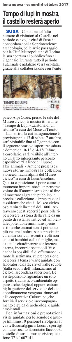 Tempo di lupi in mostra, il castello resterà aperto