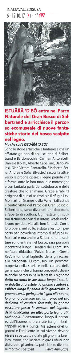 ISTUARA D' BO entra nel Parco Naturale del Gran Bosco di Salbertrand e arricchisce il percorso ecomuseale di nuove fantastiche storie del bosco scolpite nel legno
