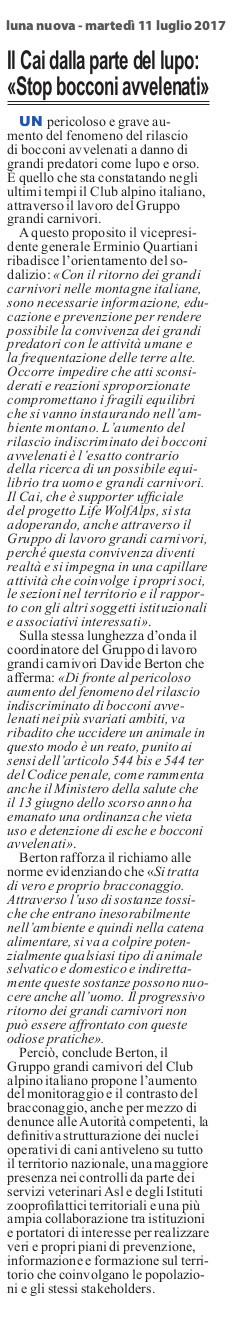 Il Cai dalla parte del lupo: "Stop bocconi avvelenati"