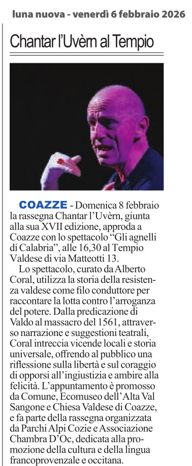 Chantar l’Uvèrn a Coazze: in scena “Gli agnelli di Calabria”