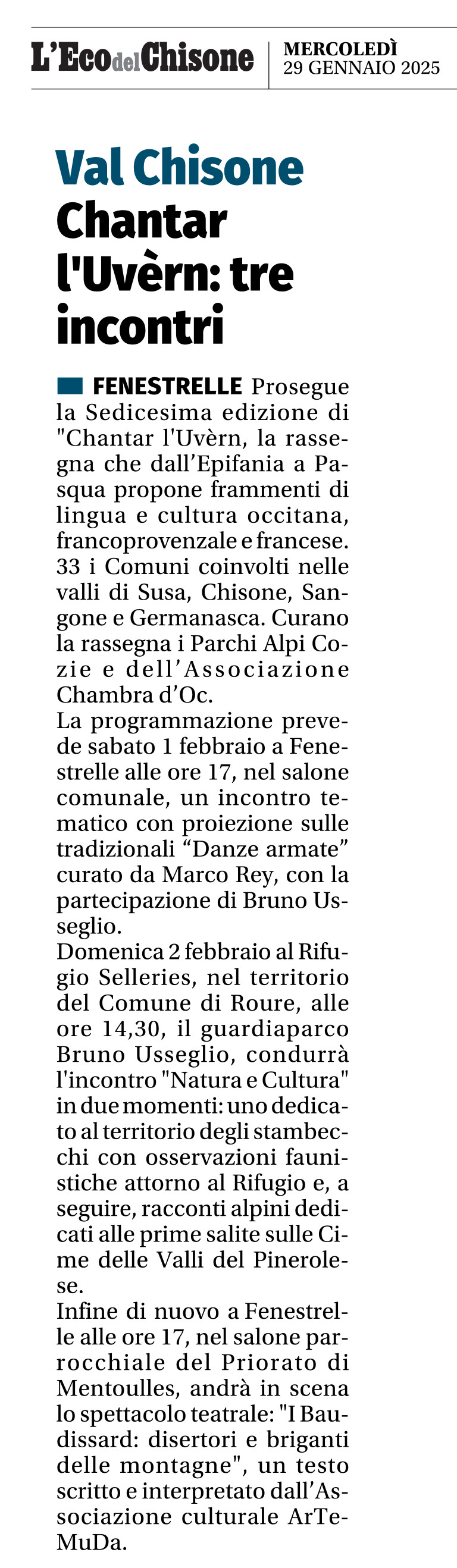 Val Chisone Chantar l'Uvèrn: tre incontri