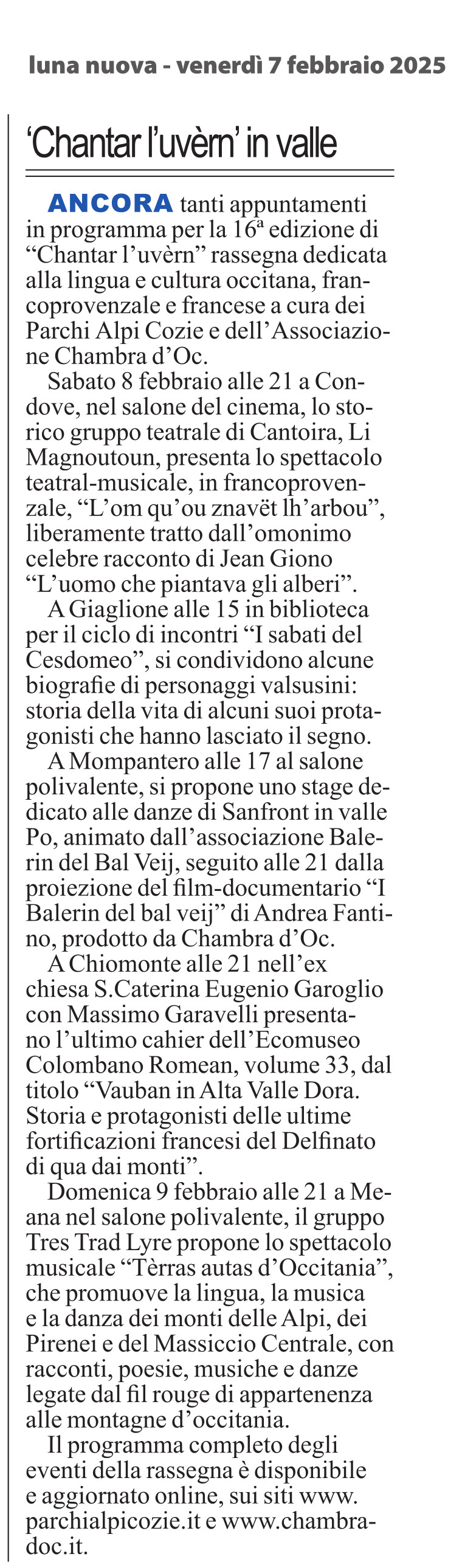 Chantar l’Uvern entra nel momento clou: tutte le date di febbraio