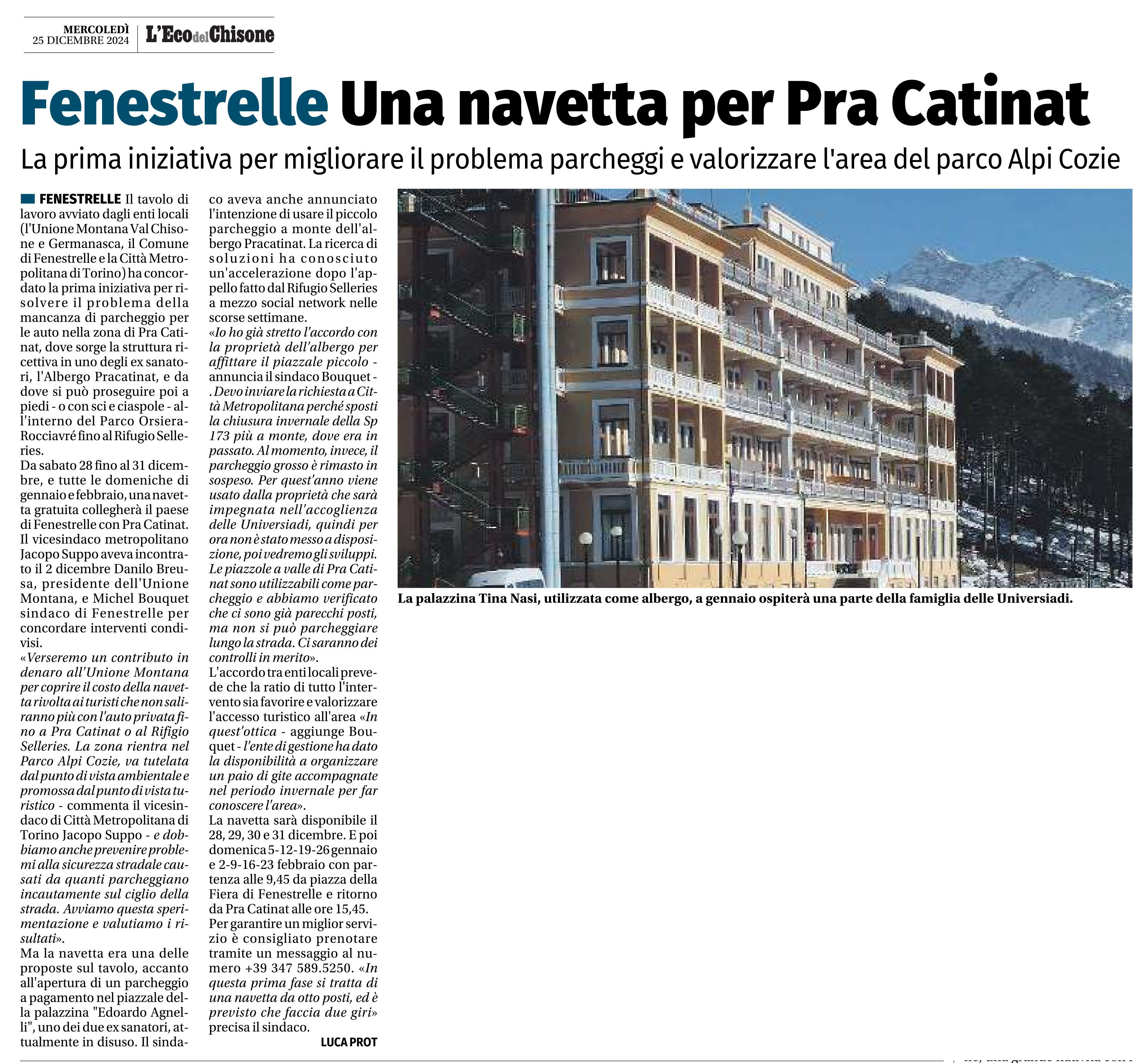 Navetta gratuita di Città metropolitana da Fenestrelle a Pra Catinat/Rifugio Selleries