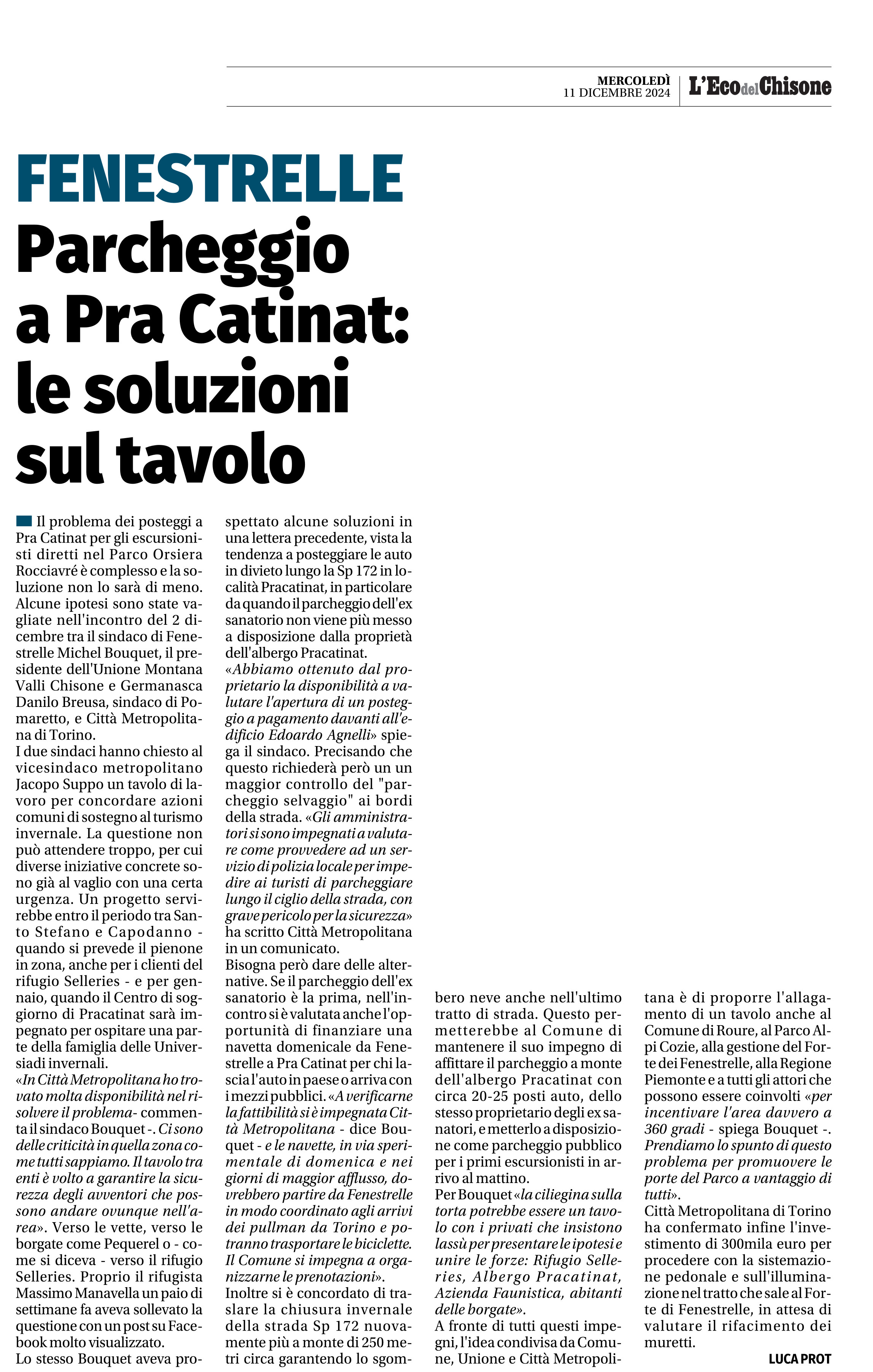 Parcheggio a Pra Catinat: le soluzioni sul tavolo