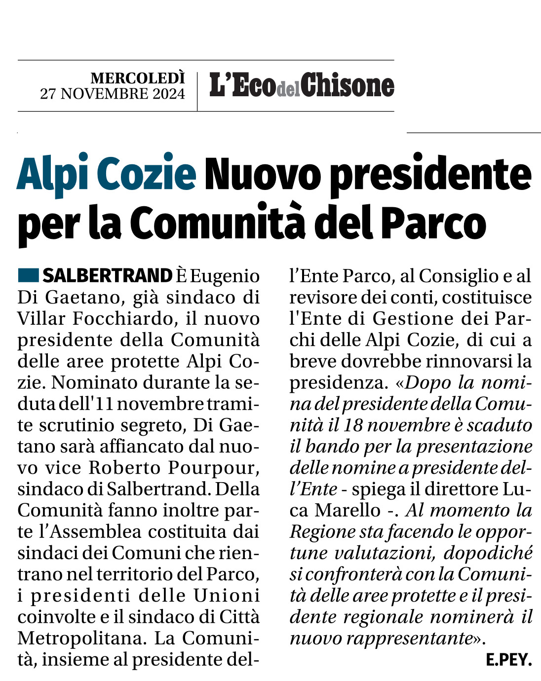 Alpi Cozie Nuovo presidente per la Comunità del Parco