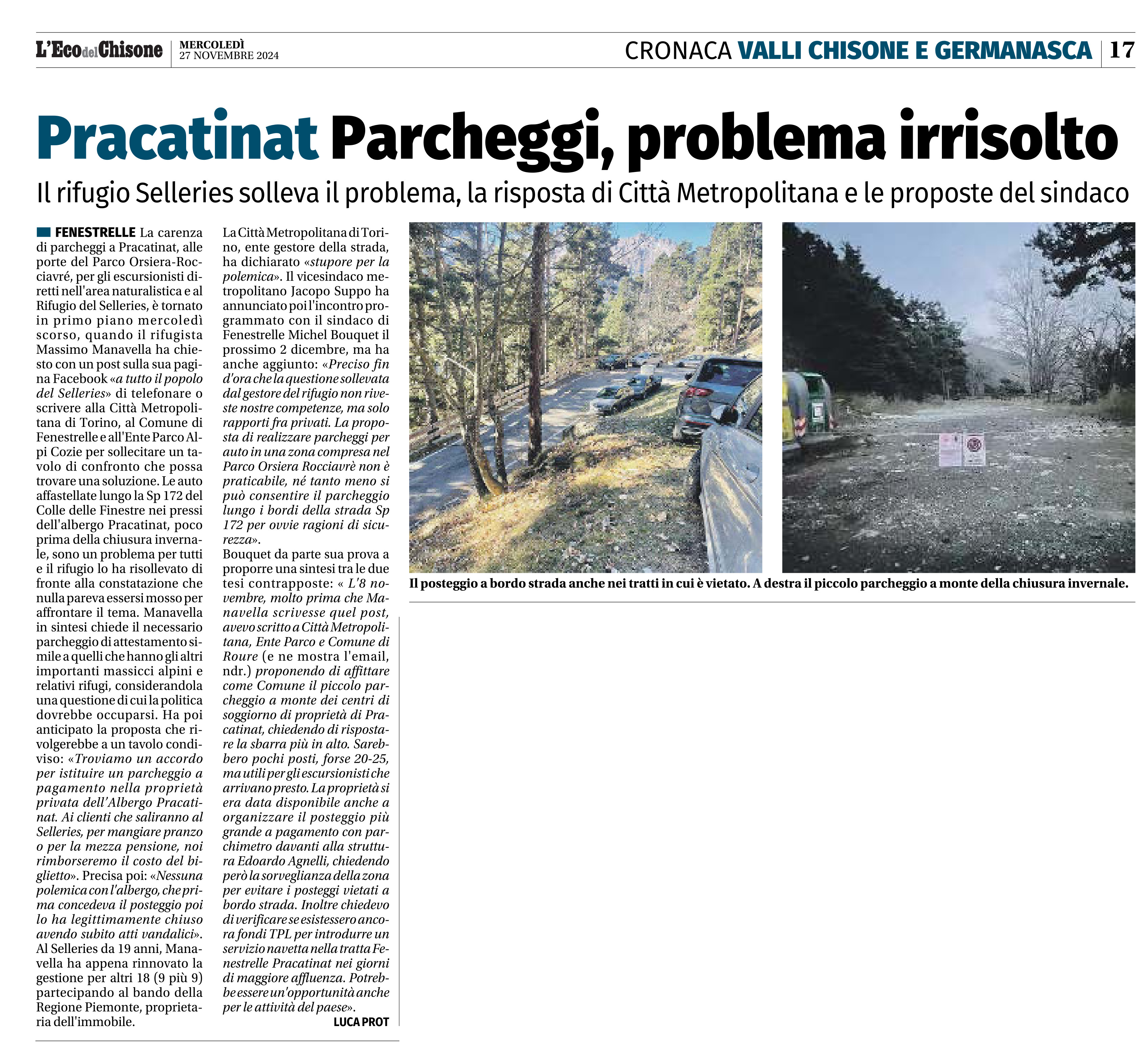 Problema parcheggi per andare al rifugio Selleries: la richiesta di aiuto e la risposta di Città metropolitana