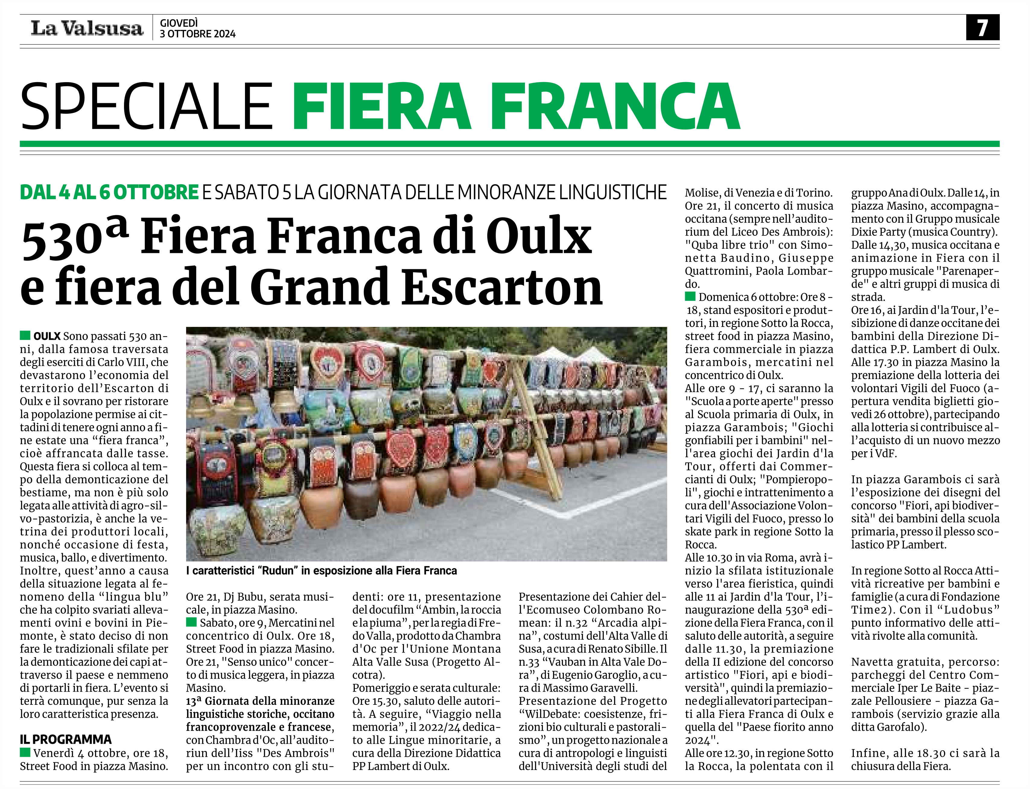 530ª Fiera Franca di Oulx e fiera del Grand Escarton