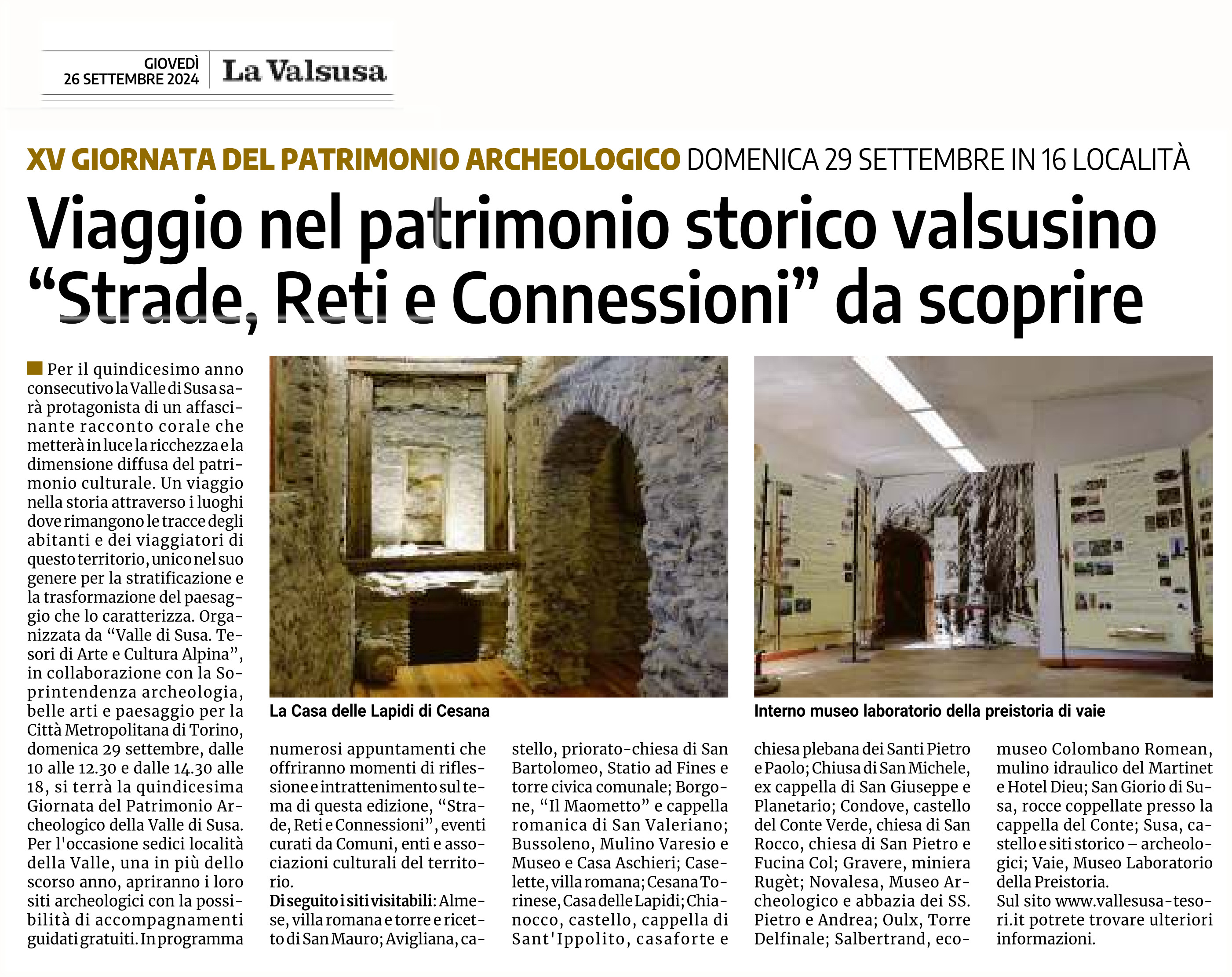 Viaggio nel patrimonio storico valsusino “Strade, Reti e Connessioni” da scoprire