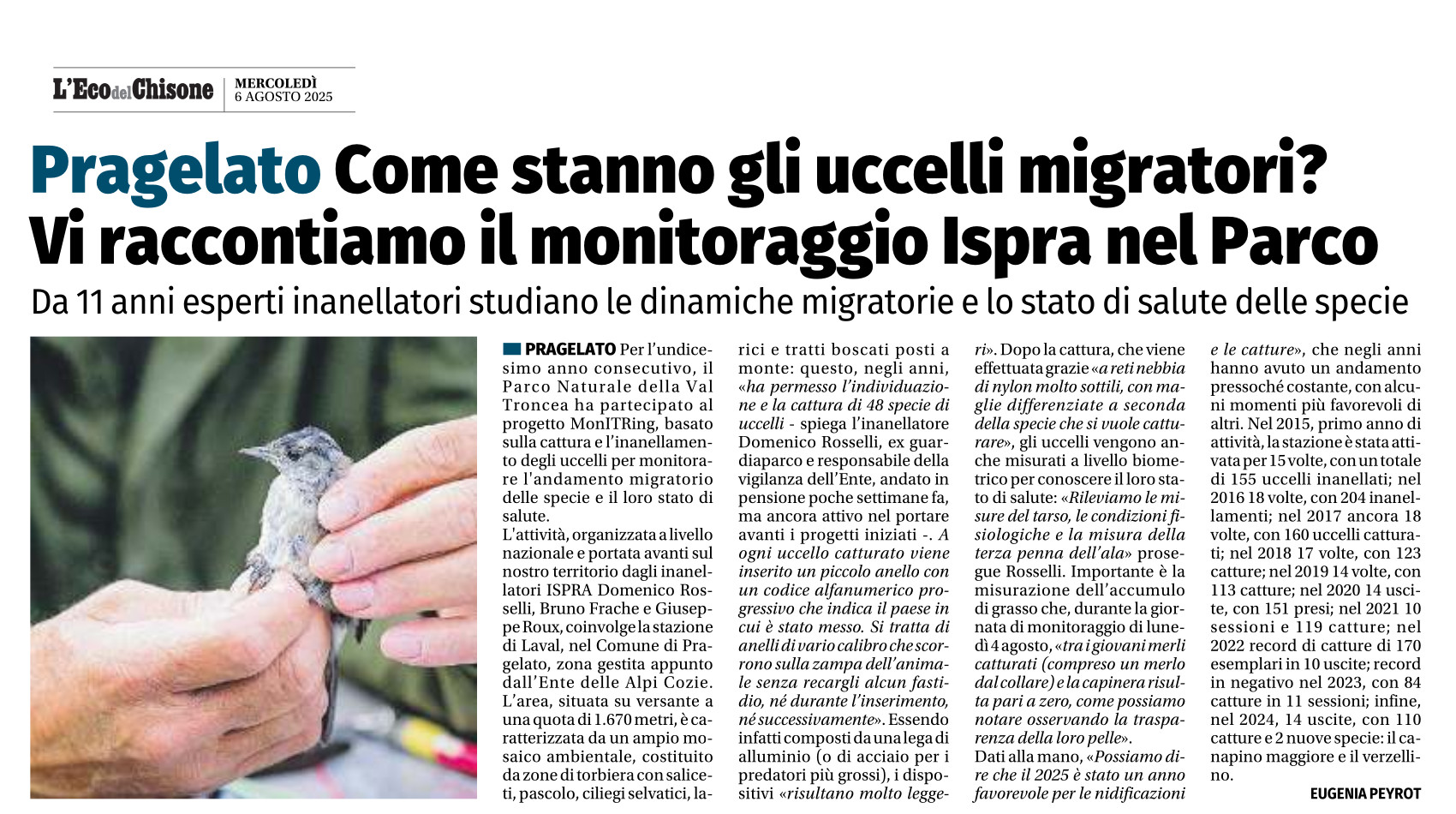 Pragelato Come stanno gli uccelli migratori? Vi raccontiamo il monitoraggio Ispra nel Parco