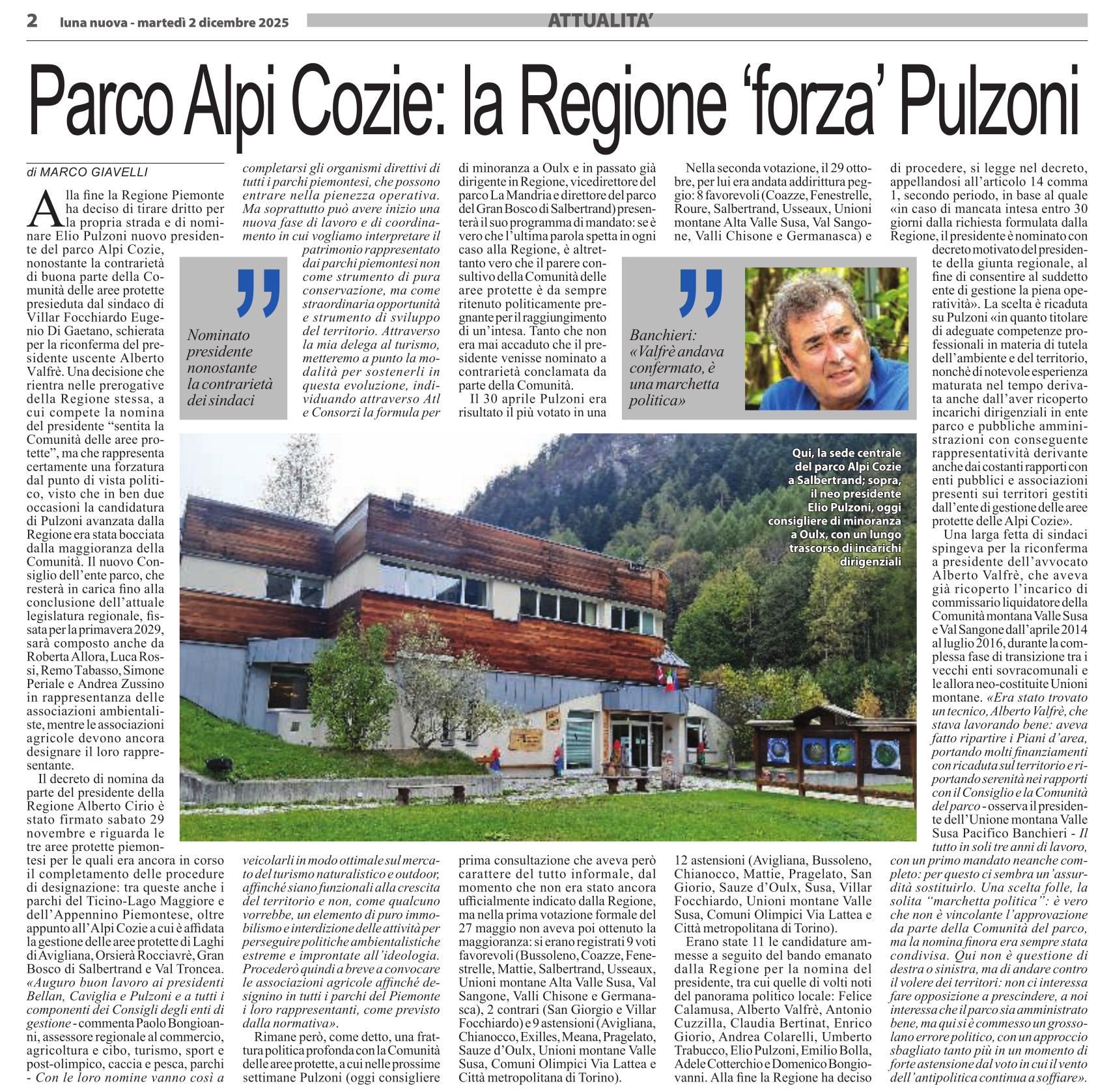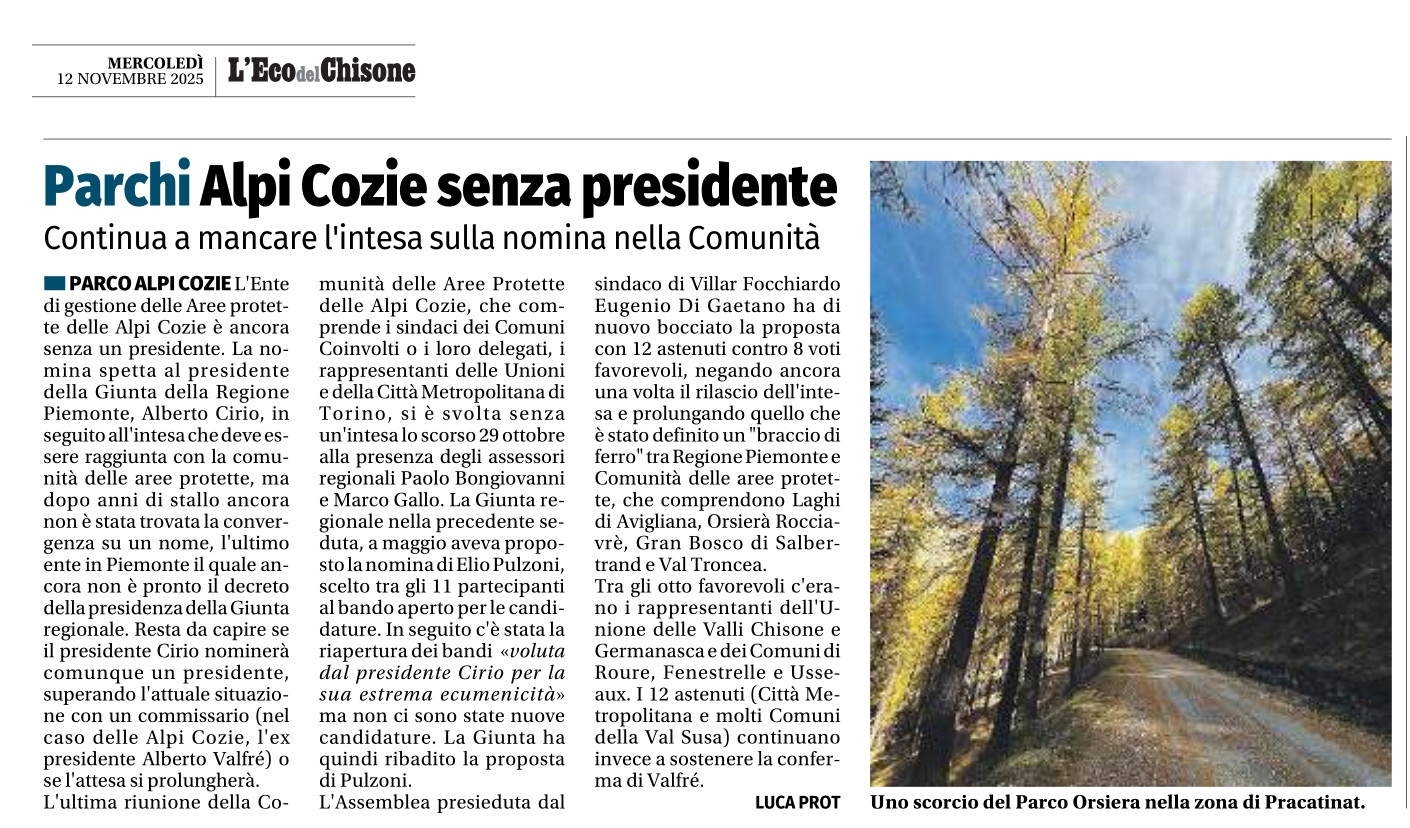 Parco Alpi Cozie: la Regione ‘forza’ Pulzoni