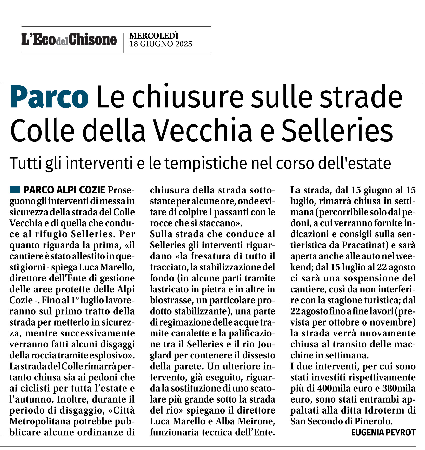 Le chiusure sulle strade Colle della Vecchia e Selleries