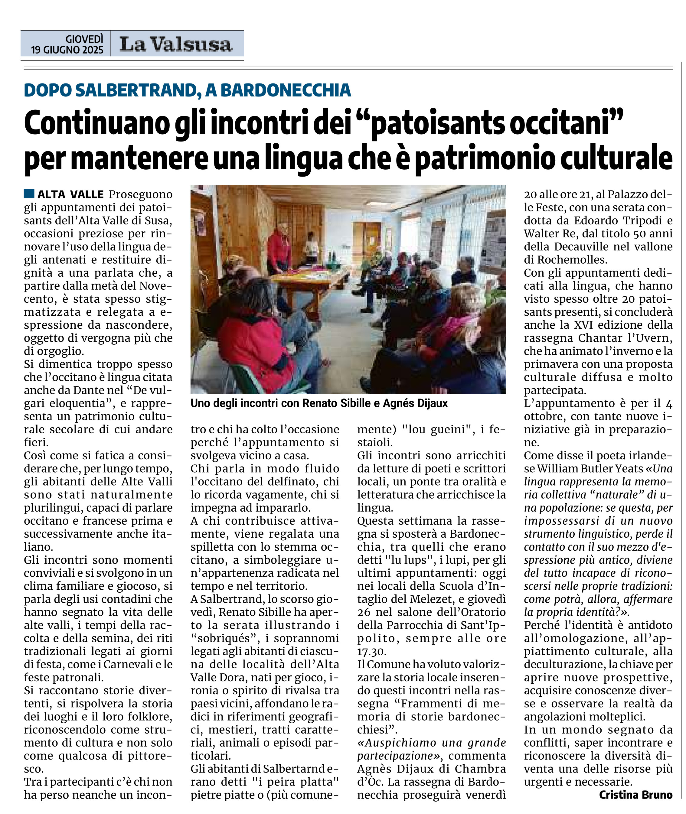 Continuano gli incontri dei “patoisants occitani” per mantenere una lingua che è patrimonio culturale