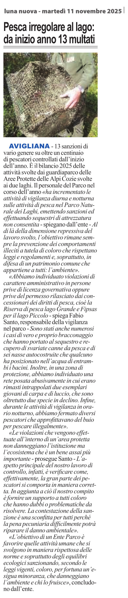 Pescatori abusivi nei laghi di Avigliana: 13 multati nel corso dell'ultimo anno -- Pescatori abusivi nei laghi di Avigliana: 13 multati nel 2025
