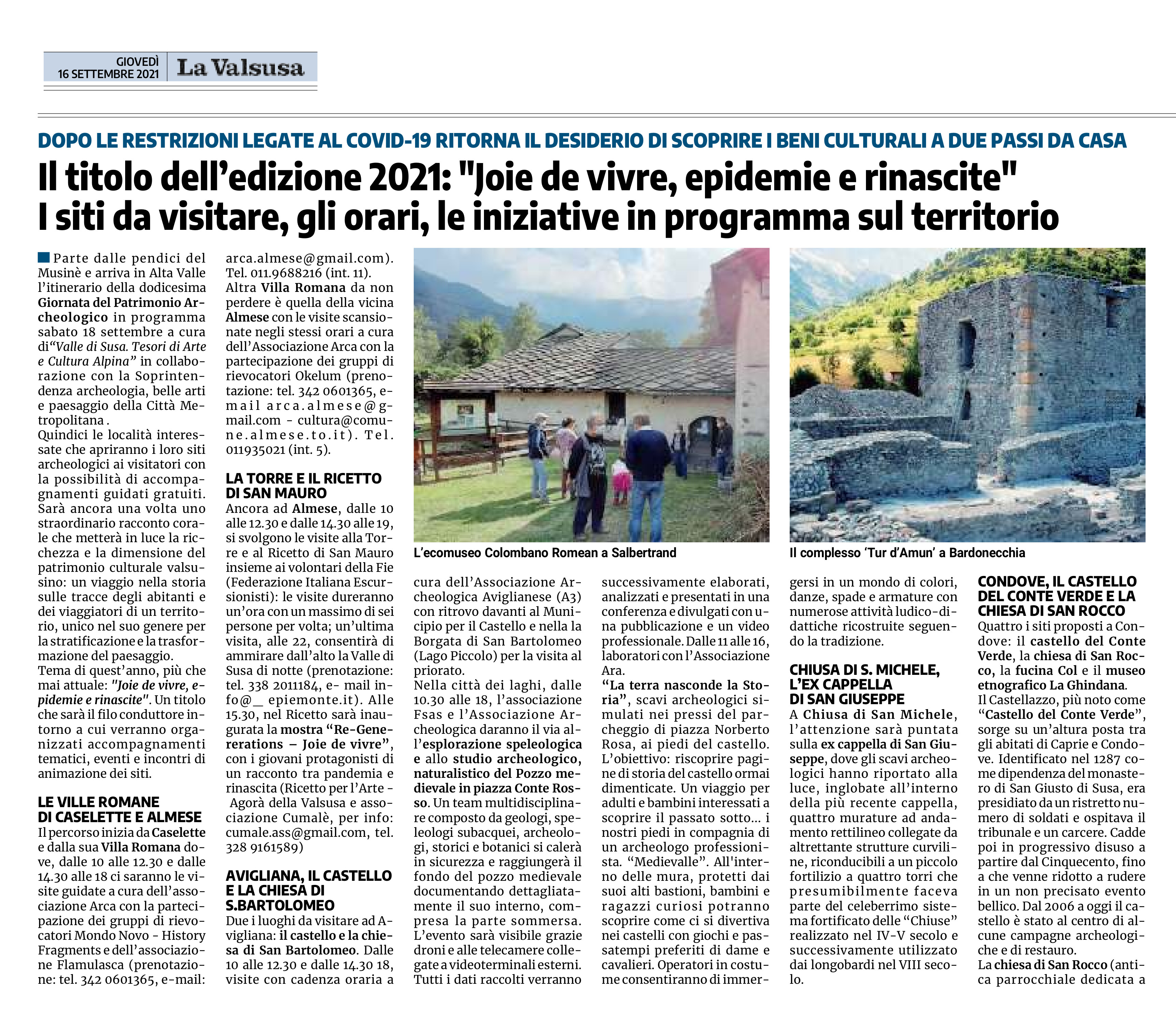 Il titolo dell’edizione 2021: "Joie de vivre, epidemie e rinascite" I siti da visitare, gli orari, le iniziative in programma sul territorio