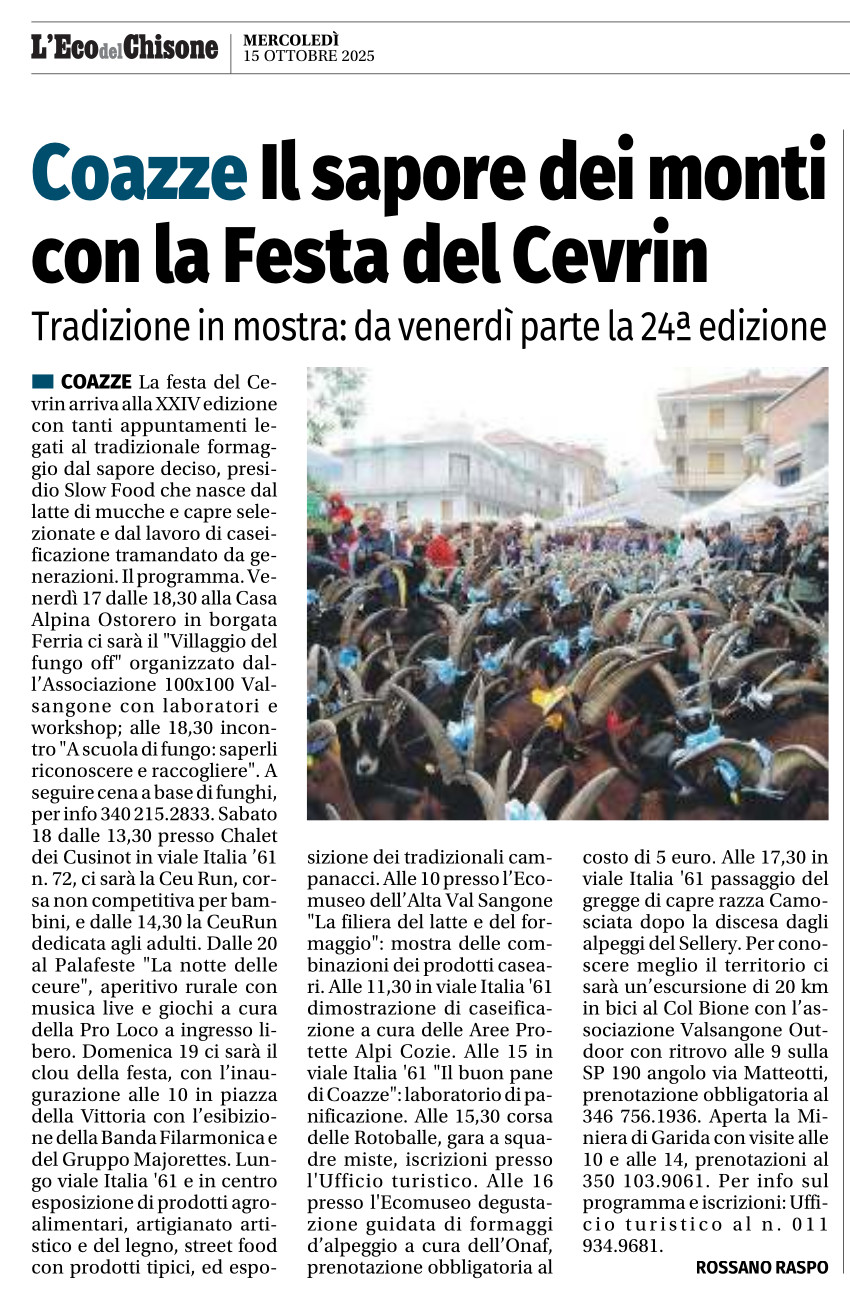 Coazze Il sapore dei monti con la Festa del Cevrin