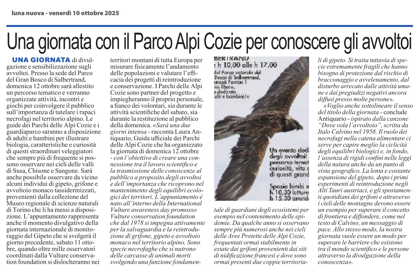 Una giornata con il Parco Alpi Cozie per conoscere gli avvoltoi
