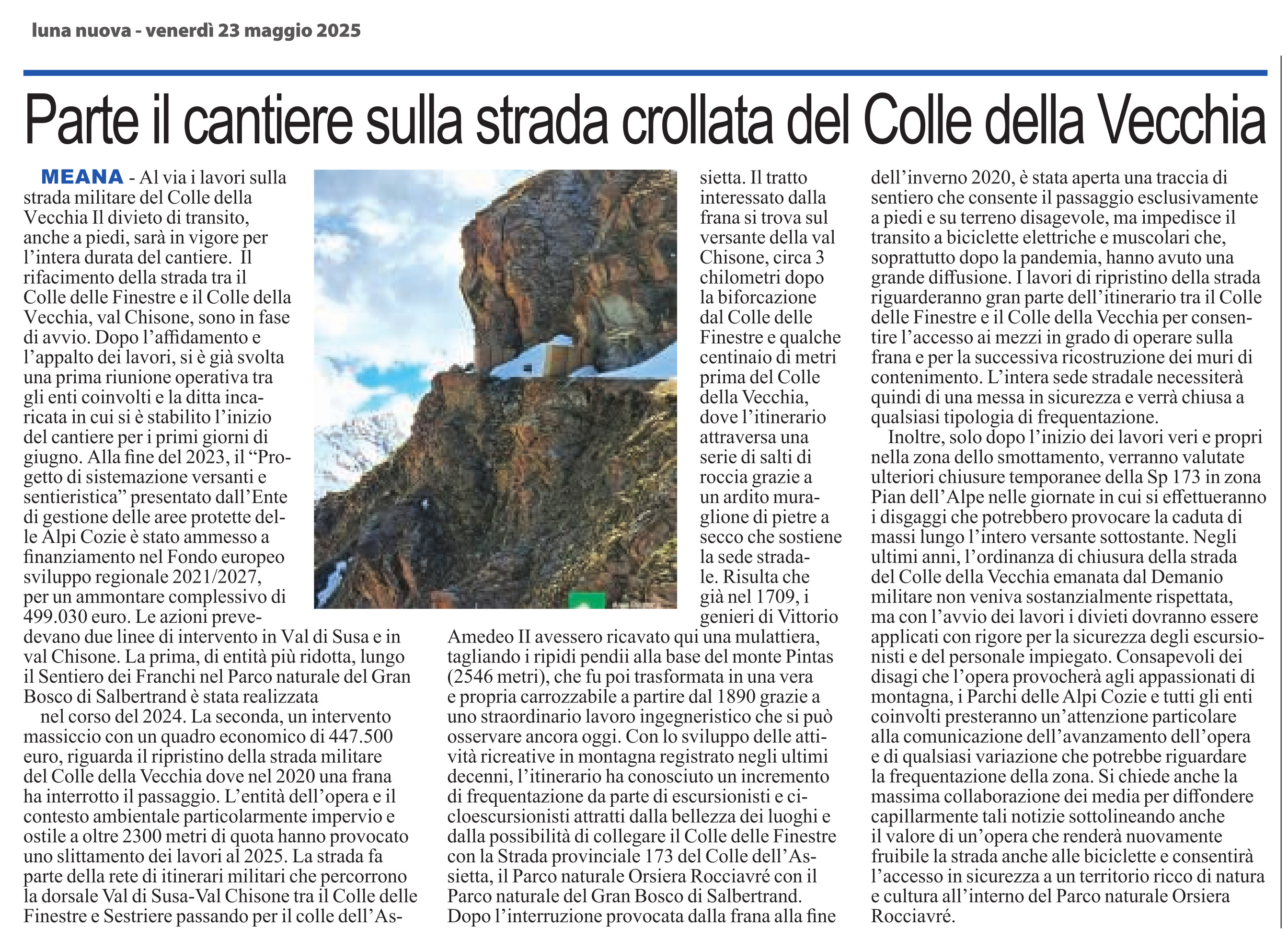 Al via i lavori sulla storica strada militare del Colle della Vecchia: riapertura completa per escursionisti e ciclisti
