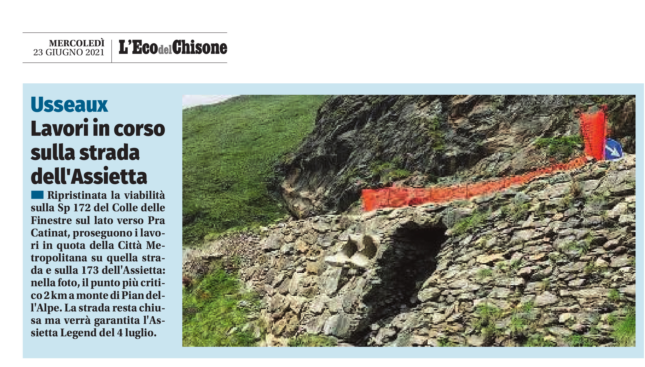 Lavori in corso sulla strada dell'Assietta