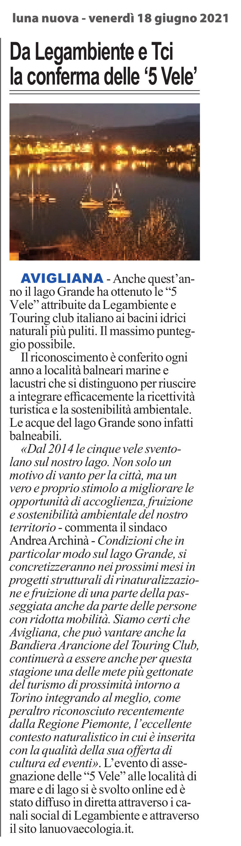 Da Legambiente e Tci la conferma delle ‘5 Vele’