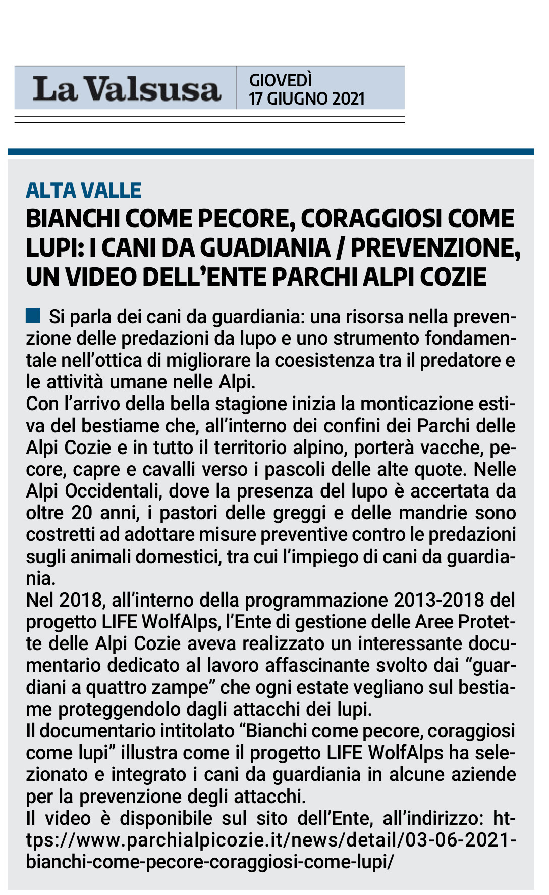 Bianchi come pecore, coraggiosi come lupi: i cani da guadiania / prevenzione, un video dell’Ente Parchi Alpi Cozie