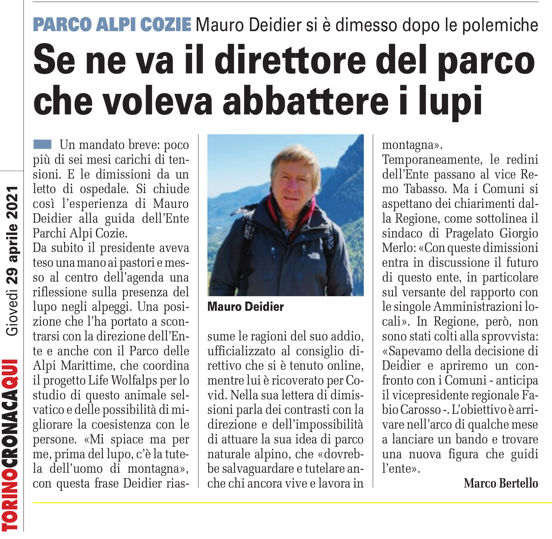 Se ne va il direttore del parco che voleva abbattere i lupi