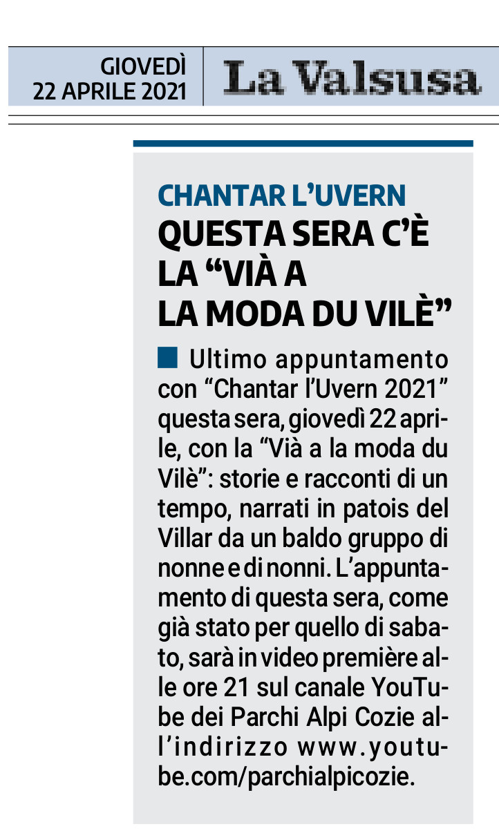 Questa sera c’è la “Vià a la moda du Vilè”